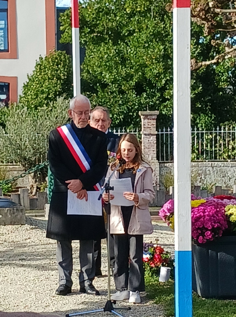 Monsieur le Maire, Bruno Quesnel, accompagné de Romane, Adrien et Maximilien, a déposé une gerbe au monument aux morts.